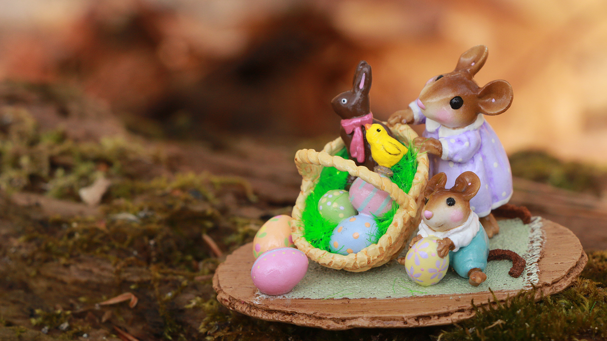 Annette combined her love of nature and its creatures with her imagination and natural artistic ability to make owls crafted from stones to sell in local shops. Her first mouse (named Miss Mouse, of course!) with her bonnet and basket was created and thus, Wee Forest Folk was born! Growing up surrounded by their mother’s creative influences son, Willy and daughter, Donna began to develop their own artistic talents. Both joined their mother’s enterprise and the next generation had begun!