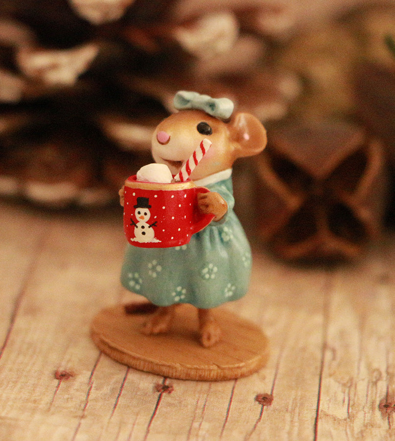 The smell of hot chocolate is enveloping this little one as she prepares for her first sip of a holiday treat sure to bring joy and cozy feelings that make the holiday season so special! Sculpted by Willy. 1.5" x 1.125"
